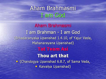 There is day and night difference between the preaching that 'you are the sinner and our son of God was crucified for our sins' versus our Vedic and Upanishadic declarations that 'tatvamasi' (you are that-Brahman), 'Aham Brahmāsmi' (I am Brahman). When you hear every day that you are the sinner, it feels like somebody is pouring hot liquid lead in your ears. On the other hand, when you hear that 'tvameva pratyaksha Brhamāsmi' (meaning 'you are the perceivable Brahman')-your mind feels very happy and content. Our Upanishads also added that 'pūrṇatvāṫ purushah aham pūrṇah'; 'ātmā śuḋḋha chaitanya svarūpah'; 'ātmah satyajnā jnāna anṫa sarva kāraṇa pūrṇah' (meaning- 'you are the Self', 'Ātman is Brahman'). Vedas also said 'You are Brahman'. The Vedas are our means of knowledge and they declare that 'you are that Brahman you have been looking for all along'.