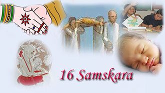 According to Hinduism, a human being is purified and refined by undergoing certain rites generally called saṁskārās. The Hindu scriptures do not consider birth as the starting point of life. It goes farther back, as it is conditioned by heredity, parentage and environment. Keeping this in mind, the samskāras start first with the conception. The sixteen sacraments are: 1) Garbhādāna 2) Pumsavana, 3) Sīmantonnayana, 4) Jātaka Karma, 5) Nāmakaraṇam, 6) Nishkramaṇa 7) Annaprāsana, 8) Ćūdakarma, 9) Upanayanam, 10 to 13) Vedavratās, 14) Samavartana, 15) Vivāha, 16) Anṫyeshṭi. In later dharmaśāsṫra literature, the four Vedavratās were omitted and the following four were added: Karṇavedha (piercing the ear-lobes); vidyārambha (same as aksharābhyāsa, learning the alphabet); vedārambha (first study of the Vedas); keśānta (cutting the hair or shaving the beard).